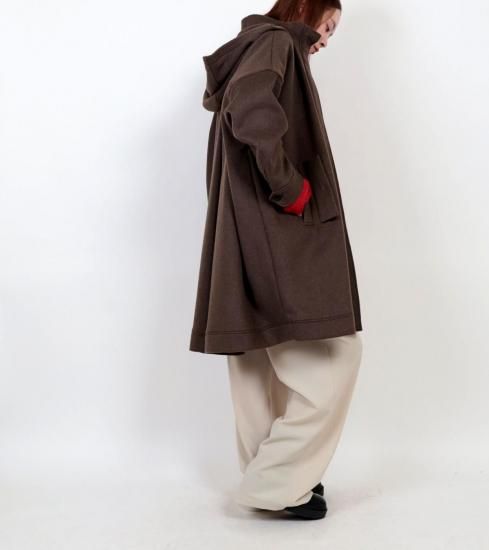 イタリアのMILIOR社の二重織のメルトンウールで作成したWool hoodie over CT。フードのジップ開きコートと聞くとカジュアルなイメージですが、モダンで洗練された印象を持つのは、ラグジュアリーな生地と、シルエットからディティールまで全体の絶妙なバランスが品を宿しているから。またオーバーサイズで贅沢な分量感が目を惹くルックスに反し、軽量で柔かな風合いの生地を使用しているため着心地も快適です。