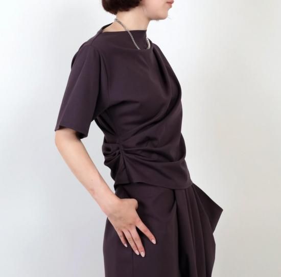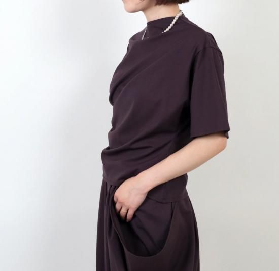 ■POINT:アシンメトリーなタックとネック開きが、構築的なシルエットを形成するカットソートップス。 モダンな印象と着心地の良さを兼ね備えています。