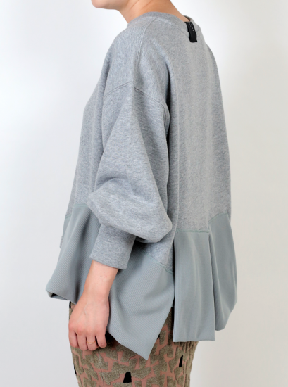 立体的なタックデザインが特徴的な1%のスウェット。 ベーシックな形ながらも、裾に施された大きめのプリーツが存在感を放ち、シンプル以上のスタイルに仕上げてくれます。 ゆったりとしたシルエットと柔らかな裏毛素材で着心地も抜群。デイリー使いはもちろん、スカートやシャツなどとのレイヤードで一気にモードな印象に。