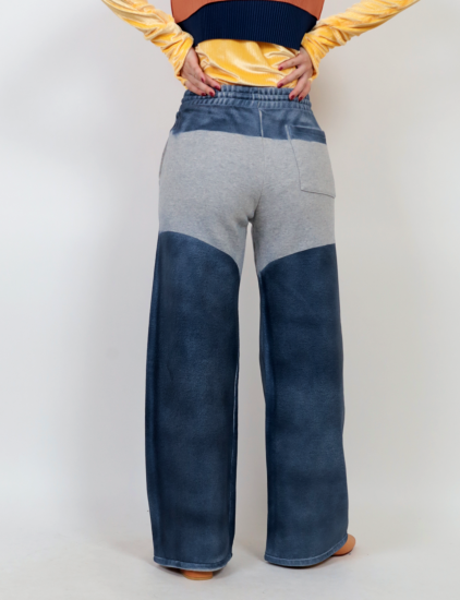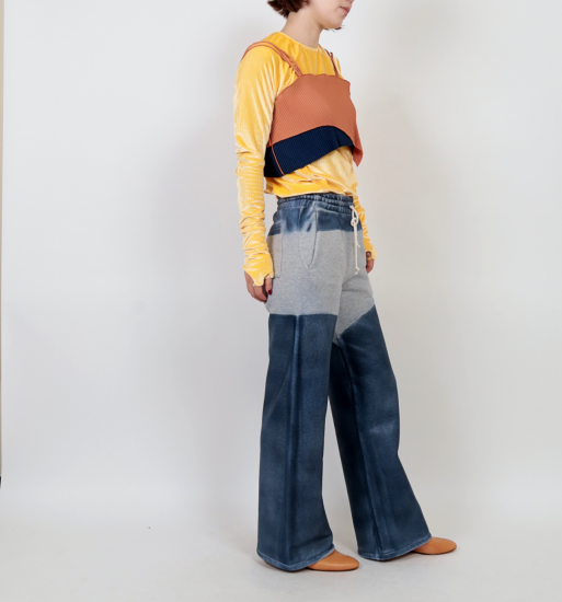 厚手の杢グレー裏起毛に、レザーのような質感をペイントした存在感あるシリーズ。 ワイドシルエットのパンツは、リラックス感がありながらもモードな雰囲気を演出します。 裾をロールアップして裏起毛を見せれば、まるでムートンのようなニュアンスに。 スタイリング次第で表情を変えられる、遊び心のある一本です。
