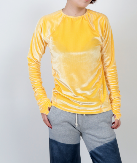 今シーズンを象徴する“CUFF-GLOVE”ディテールを施した長袖ベルベットトップス。 イタリア製の柔らかなタッチと上品な光沢が特徴のベルベット素材は着心地も抜群。バスケットボールなどで使用される手の甲用のグローブから着想を得た“CUFF-GLOVE”ディテールは、スウェットやニットのインナーとしてレイヤードしても存在感を放ちます。 背面のTASTE TAGはアソートになります!