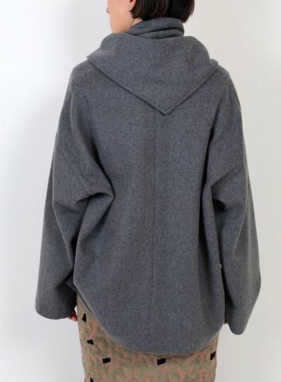 保温性に優れたジロンラムウール素材を贅沢に使用した、冬のスタイリングに欠かせない上質トップス。 レギュラーウールよりも光沢感と柔らかさが際立つジロンラムウールブレンドを、ビーバー仕上げの生地で丁寧に仕立てています。上品な艶とふっくらとした風合いが、着るだけでリュクスな雰囲気を演出。 付属のスカーフをプラスすれば、より洗練された印象に。 スカート合わせでフェミニンに、パンツ合わせでモードにと、幅広いスタイリングが楽しめます。 冬の着こなしを格上げしてくれる一枚です。