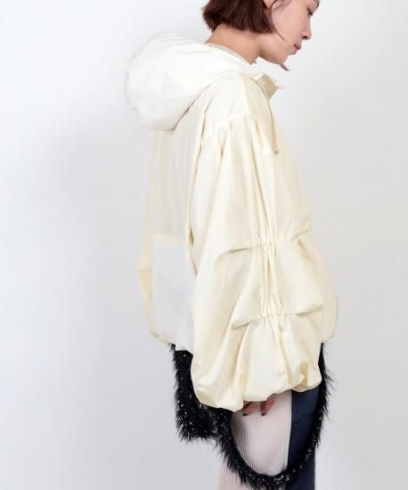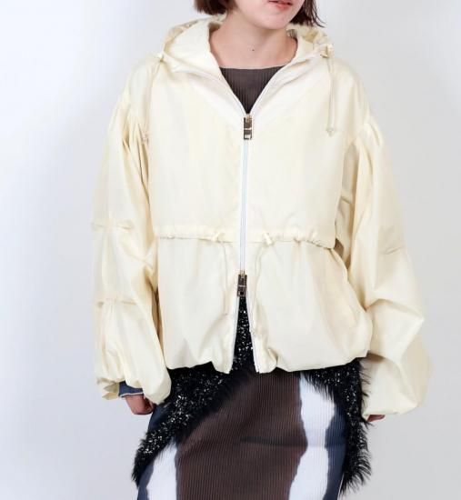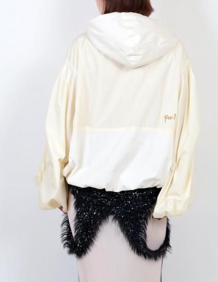 程よい光沢とハリを持つナイロン素材が魅力の、イチパーセントらしいモードなバルーンジャケット。 さらりとした軽やかな生地感で、春や秋の羽織りにちょうど良い一枚です。 胸下位置に配したドローストリングを絞ることで、ふんわりとしたボリューム感からコンパクトなシルエットまで自在にアレンジ可能。 裾に向かってゆるやかに広がるバルーンラインが立体的なフォルムを生み出し、軽く羽織るだけでスタイリングに動きをプラスします。 ワンピースやスカートと合わせて女性らしく、パンツスタイルでモードにまとめても◎ 季節の変わり目に活躍する、存在感のあるライトアウターです。