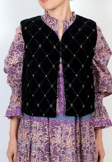 NEW 「sara mallika」Velvet Beads Embroidery Vest