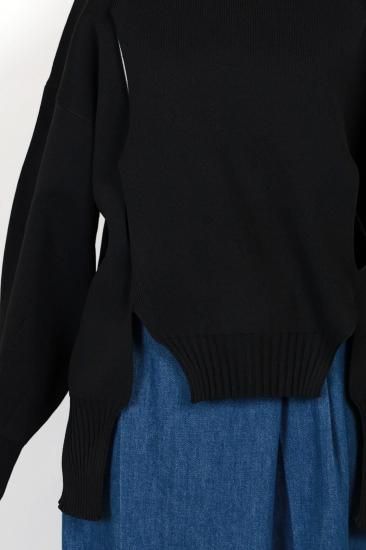 大胆なスリットデザインが印象的な、1%のニットプルオーバー。 肩・脇に入ったカッティングが動くたびに立体感をつくり、1枚でモードな存在感を放ちます。